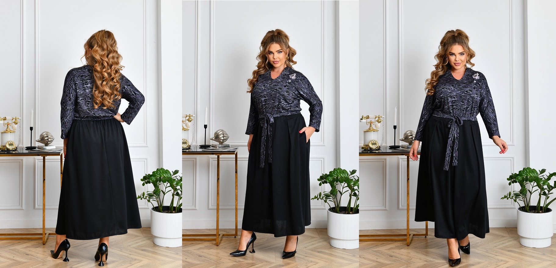 Платье с карманами и брошкой в комплекте