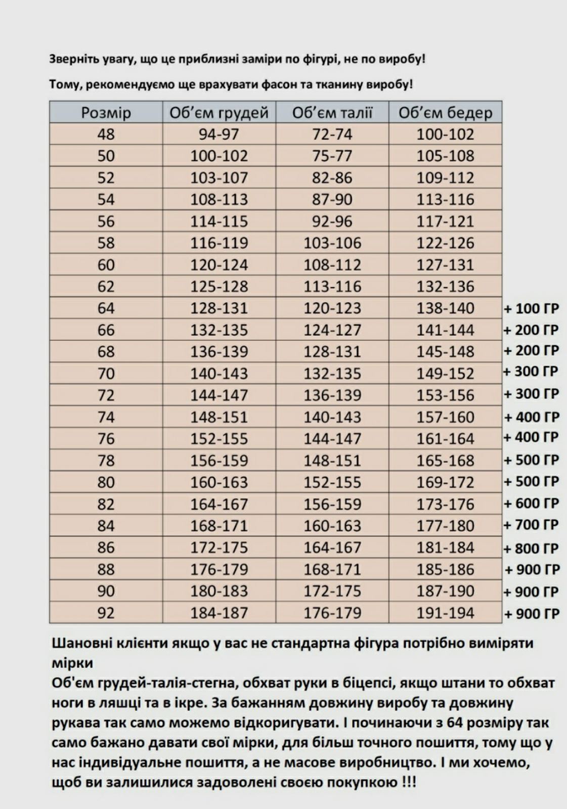 | Размер | Грудь | Талия | Бедра |